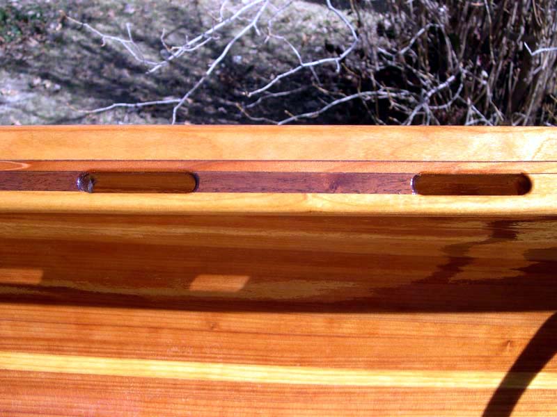 cherry gunwales are tapered to 3/8" width. Screws were used to